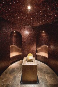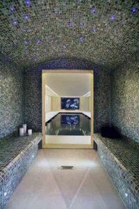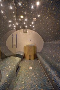 Một phòng xông hơi được trang trí bằng những viên mosaic lung linh, đẹp mắt , sẽ là sự kết hợp hoàn hảo mang lại sự tiện dụng, cảm giác thư thái, sang trọng cho người dùng